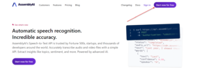 AssemblyAI’s is a Speech-to-Text API that is trusted by Fortune 500s, startups, and thousands of developers around the world. It Accurately transcribes audio and video files with a simple API Powered by advanced AI.